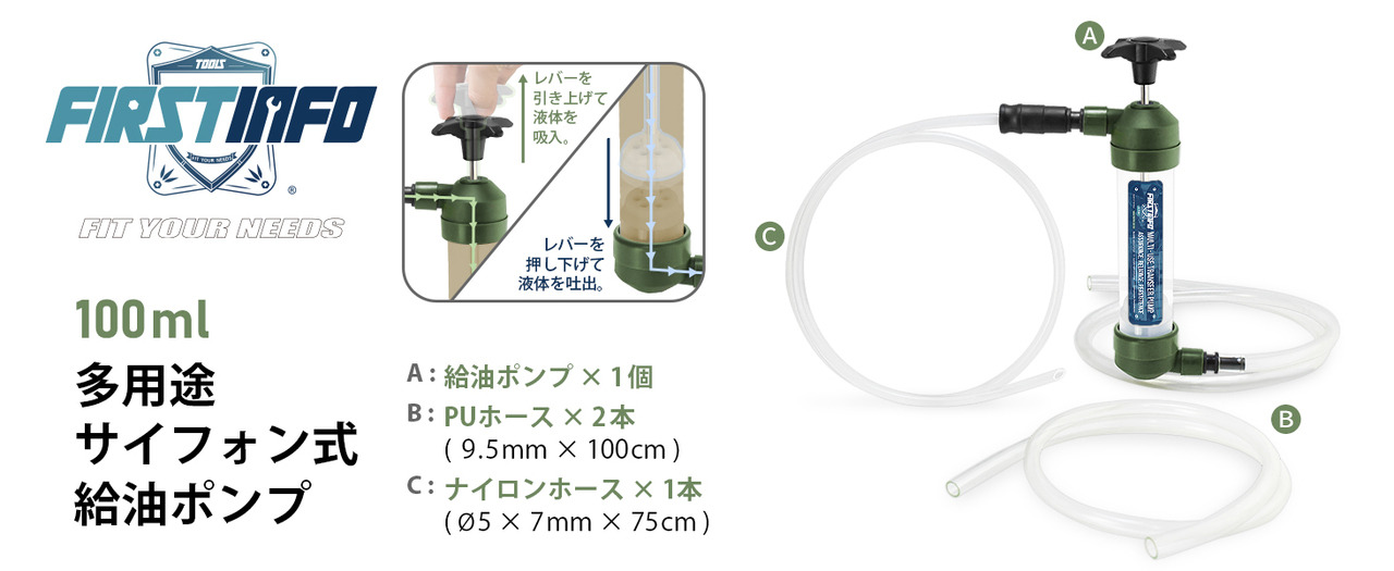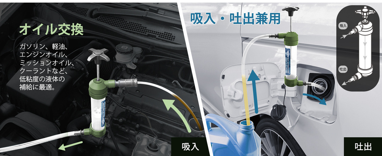 - 【用途】ガソリン、軽油、エンジンオイル、ミッションオイル、クーラントなど、低粘度の液体の補給に最適です。