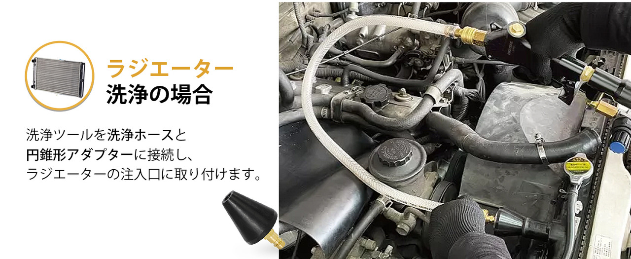 - 【冷却システム洗浄】強力な脈動水流で、冷却システム内の不純物を効果的に洗浄します。