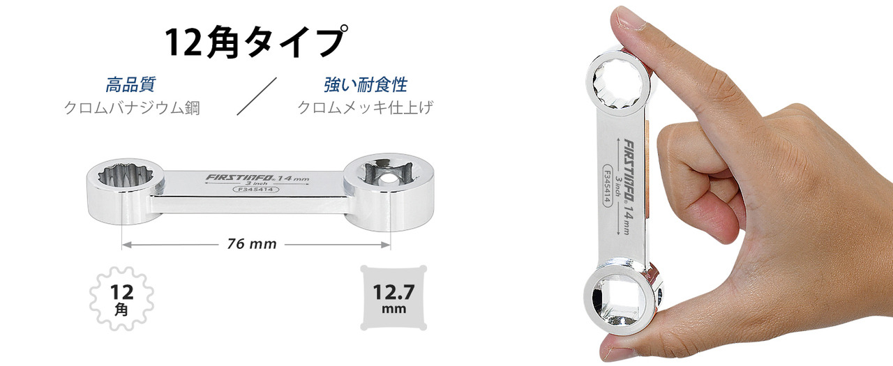 - 【シッカリと噛む】曲線デザインの12角で、しっかりナットを噛むことができます。 作業中にレンチが滑って車に傷をつけてしまうことがありません。